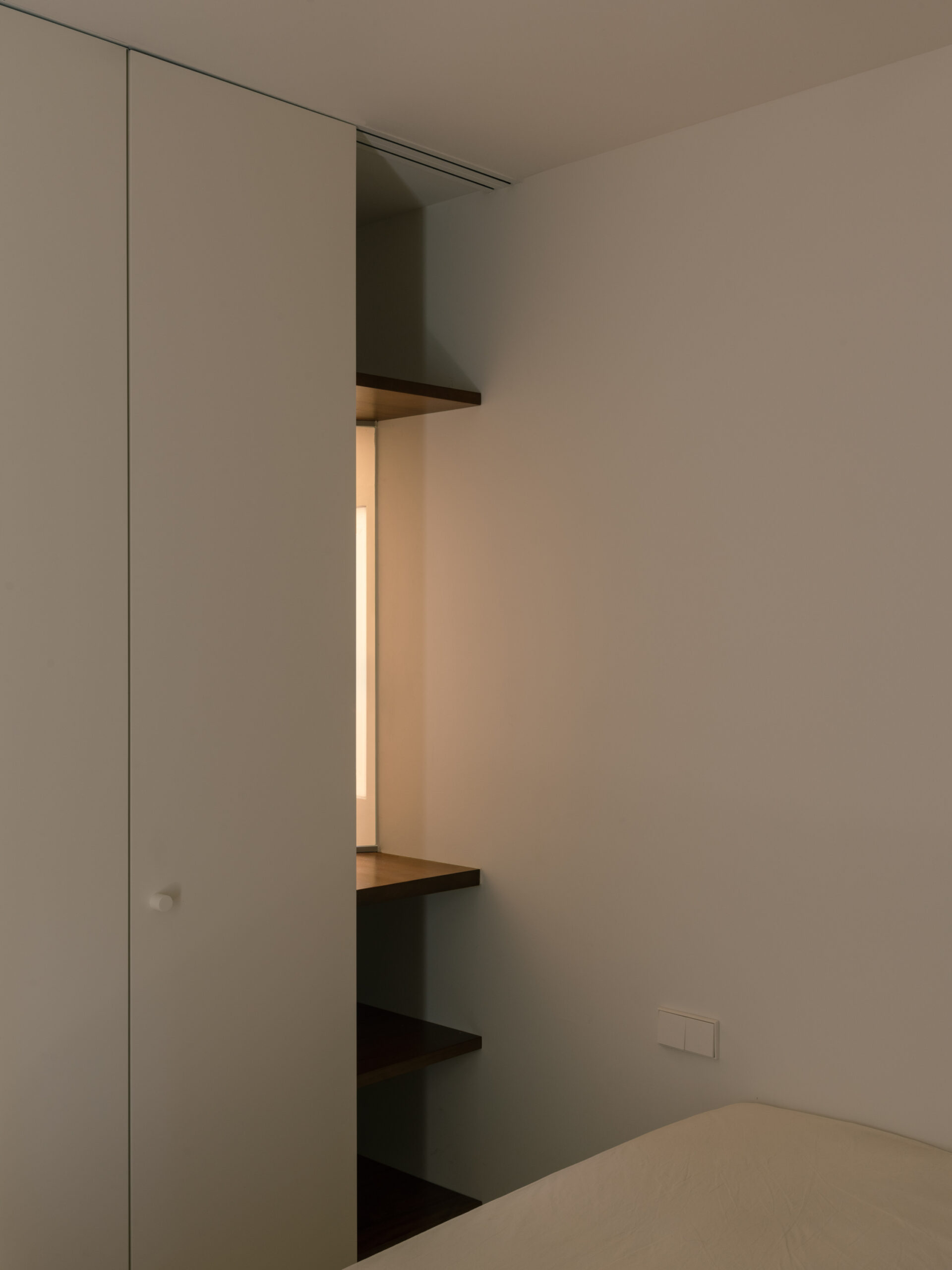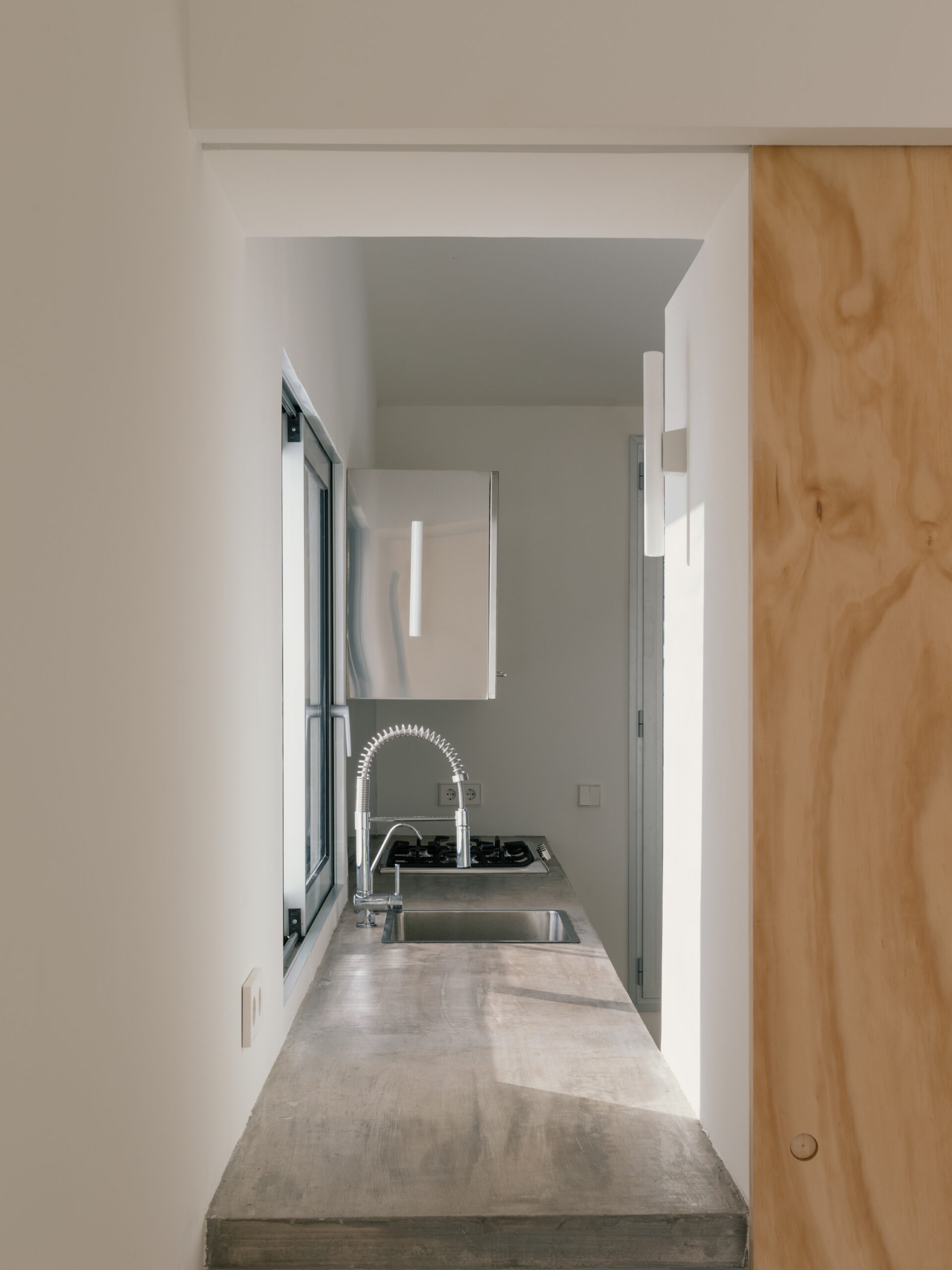 Tο αρχιτεκτονικό γραφείο threshold ανασχεδίασε, στρατηγικά, το διαμέρισμα στην οδό Τροίας, στο κέντρο της Κυψέλης, σαν να θεραπεύει ένα σώμα που χρειάζεται αποσυμφόριση και επαναπροσδιορισμό. Στον πρώτο όροφο τυπικής Αθηναϊκής πολυκατοικίας του ’70, με έντονα κατακερματισμένη εσωτερική διαρρύθμιση, όλη η μη φέρουσα προϋπάρχουσα τοιχοποιία αφαιρείται με στόχο τη δημιουργία ενός ενιαίου χώρου καθημερινής κατοίκησης με εναλλαγές φωτός και ποικίλα επίπεδα οπτικής διαπερατότητας.