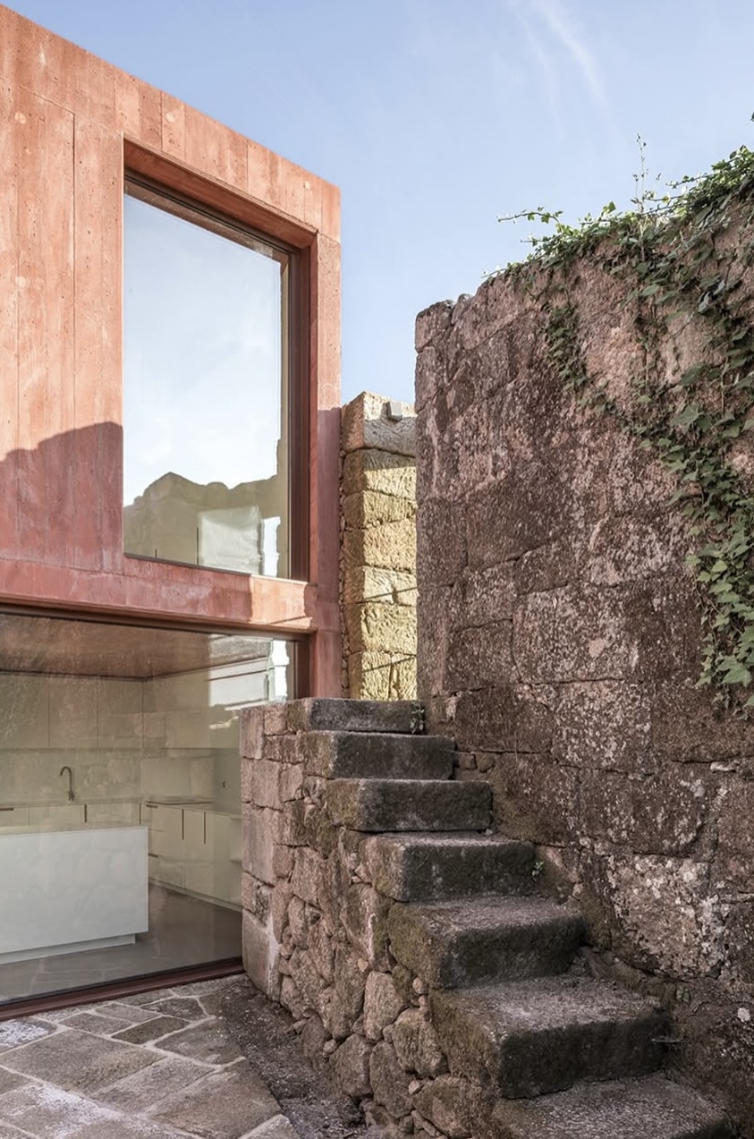 Like a matryoshka, Casa Jerónimo is conceived as a vacation house structured through a logic of containment and revelation. Autonomous yet deeply rooted, Jerónimo House resonates with the local chromatic architectural tradition, embodying a palette shaped over generations by farmers and their enduring relationship with the land. The new pink concrete volume emerges with deliberate clarity—an inhabitable folly—simultaneously distinct from and inseparable from the ancient ruin: its origin, its ground, its host. Conceptually, this recursive structure challenges conventional notions of origin and spatial hierarchy: a landscape containing a ruin, a ruin containing a house, a house containing a home.